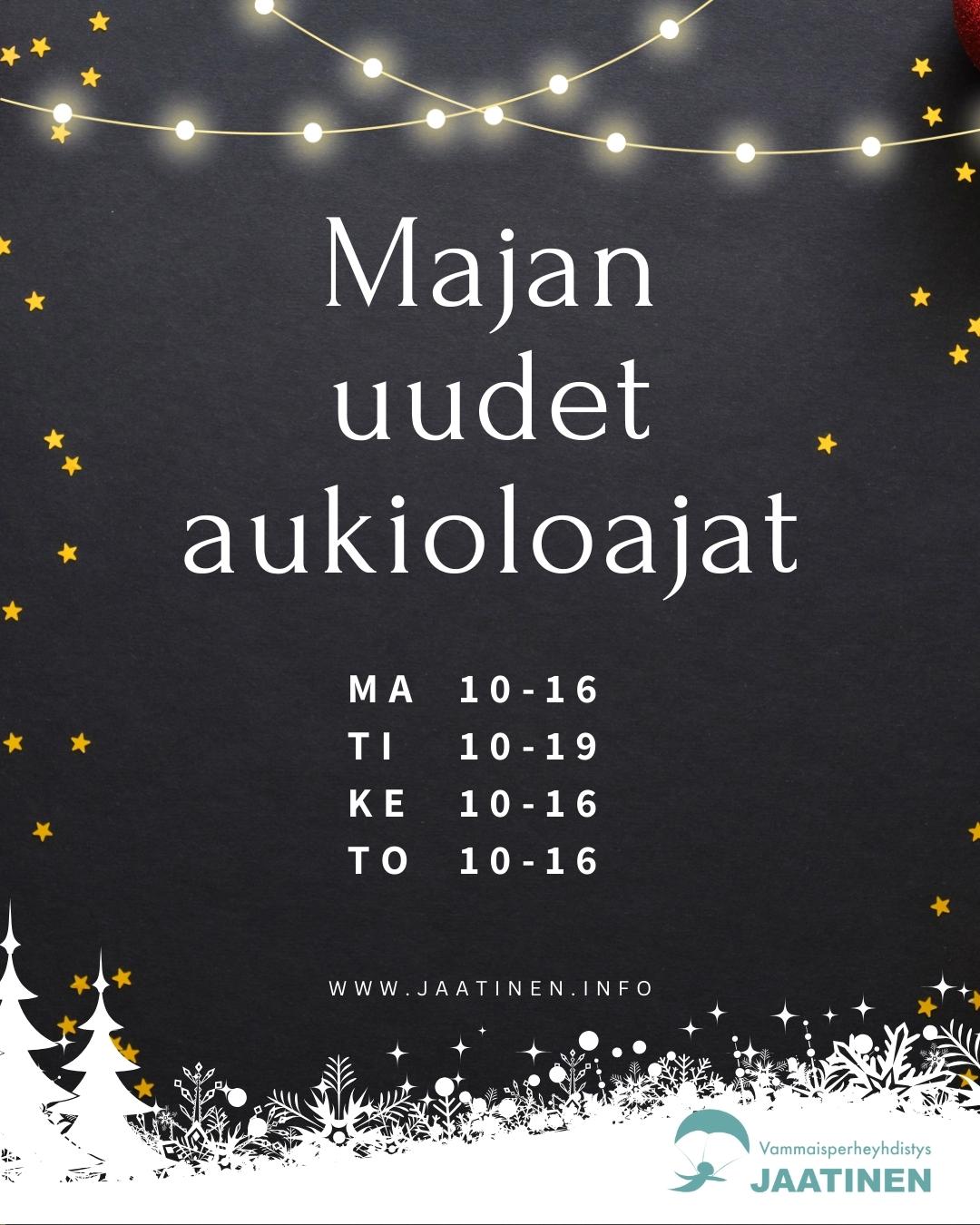Iloksemme voimme kertoa teille entistä laajemmat MAJAN UUDET AUKIOLOAJAT 7.1.2026 ALKAEN ma klo 10–16 ti klo 10–19 ke klo 10–16 to klo 10–16 Tiistaisin Maja on siis avoinna aina klo 19 saakka –…