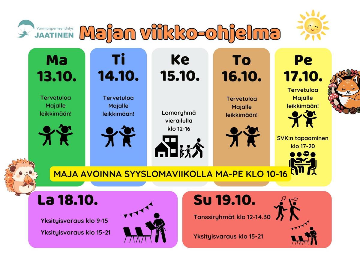 Maja avoinna poikkeuksellisesti syyslomaviikolla myös perjantaina 17.10. 2025 klo 10-16! Tervetuloa leikkimään!