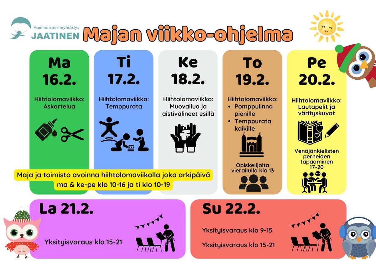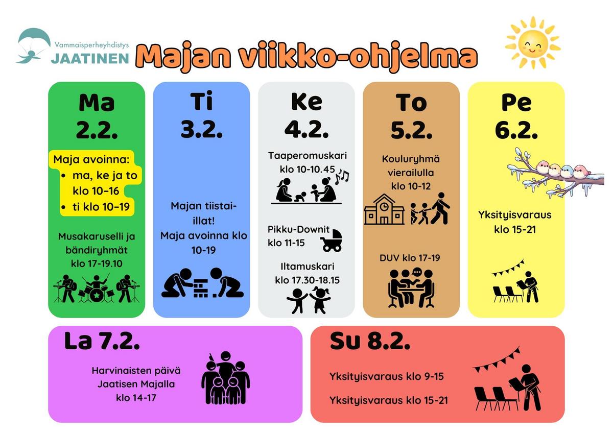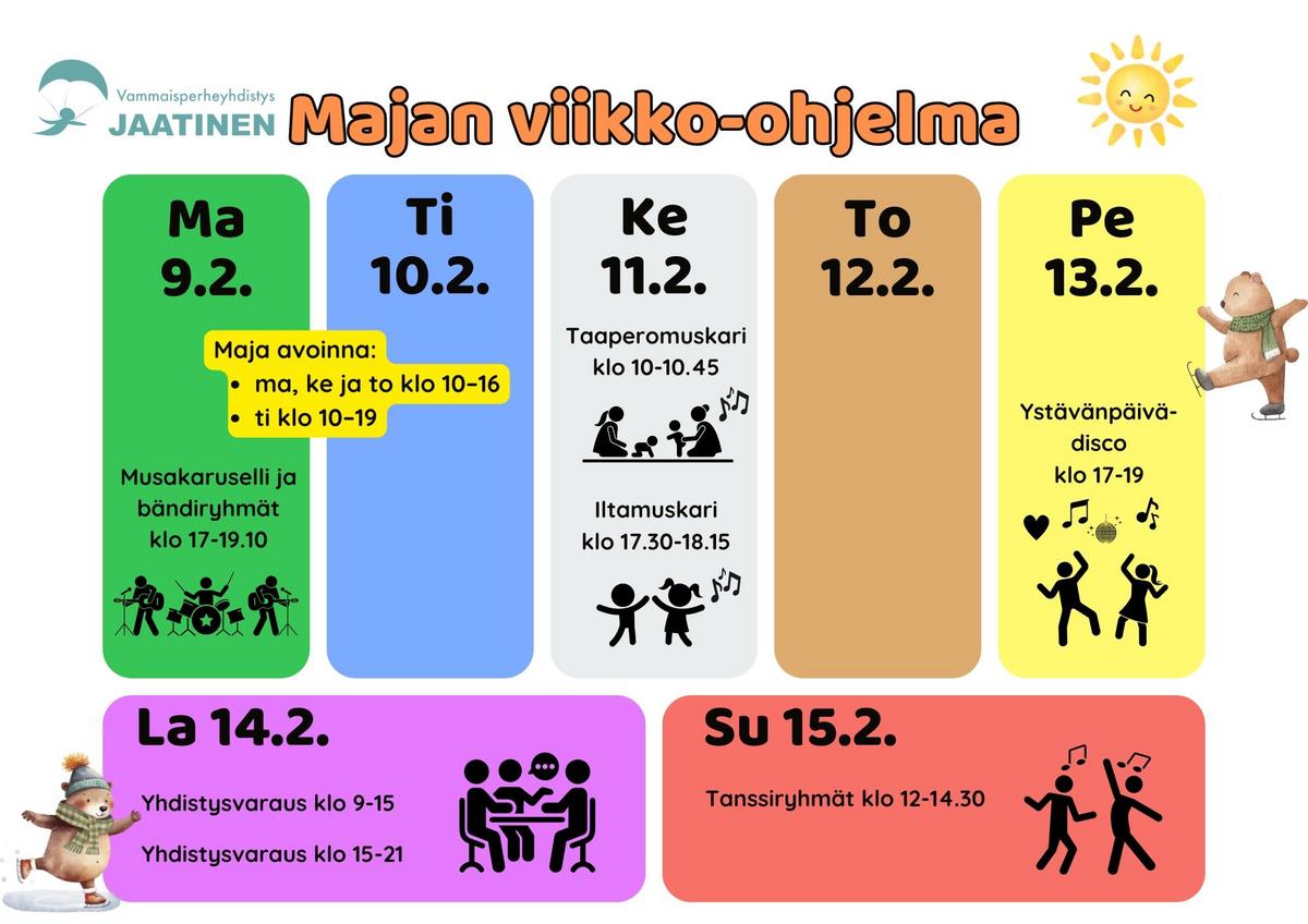 Jaatisen Maja on suljettu joulutauon ajan 19.12.2025–6.1.2026. Tänä aikana yksityisvaraukset sekä Malike-toimintavälineiden noudot ja palautukset eivät ole mahdollisia. Rauhallista joulua kaikille! ✨