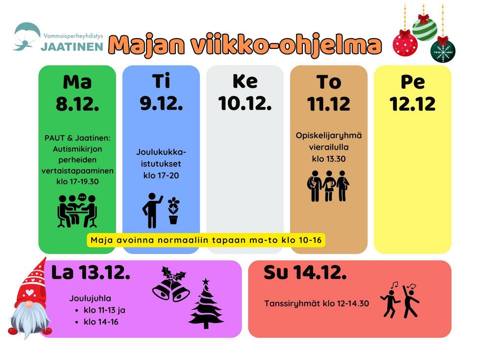 Maja on suljettu joulutauon ajan 19.12.2025–6.1.2026.