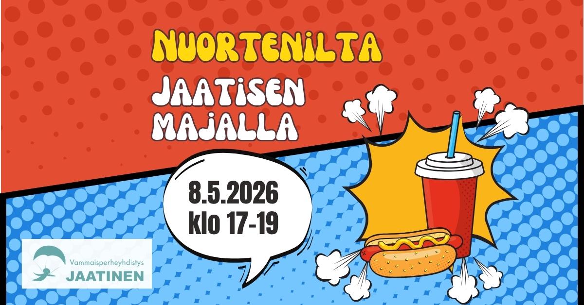 Tule mukaan Nuorteniltaan Jaatisen Majalle! Luvassa musiikkia, pelejä, mukavaa yhdessäoloa sekä hodareita ja limua.